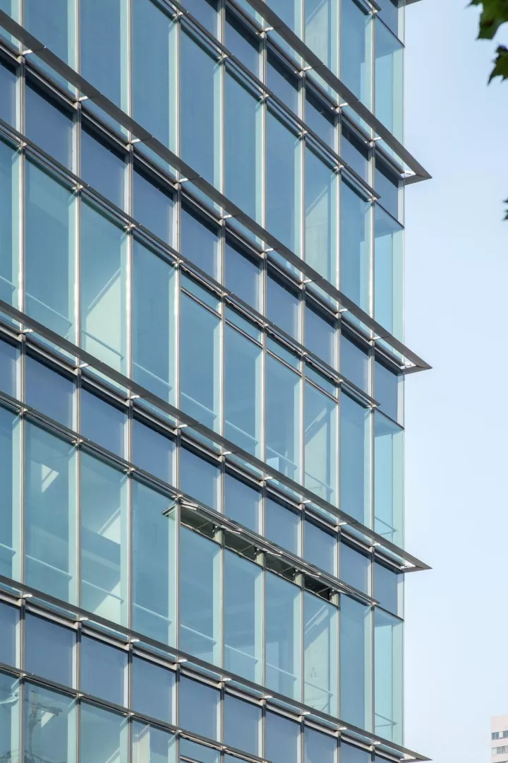 本案里塔楼幕墙首先要解决开窗的问题,在SARS之后,大部分写字楼突然都要求可以开窗,哪怕新风系统做得再好。但是惯常的幕墙开窗对于外立面的效果是毁灭性的。