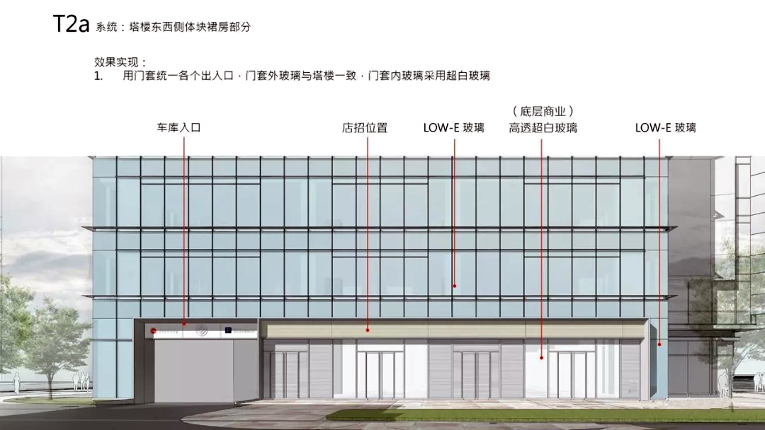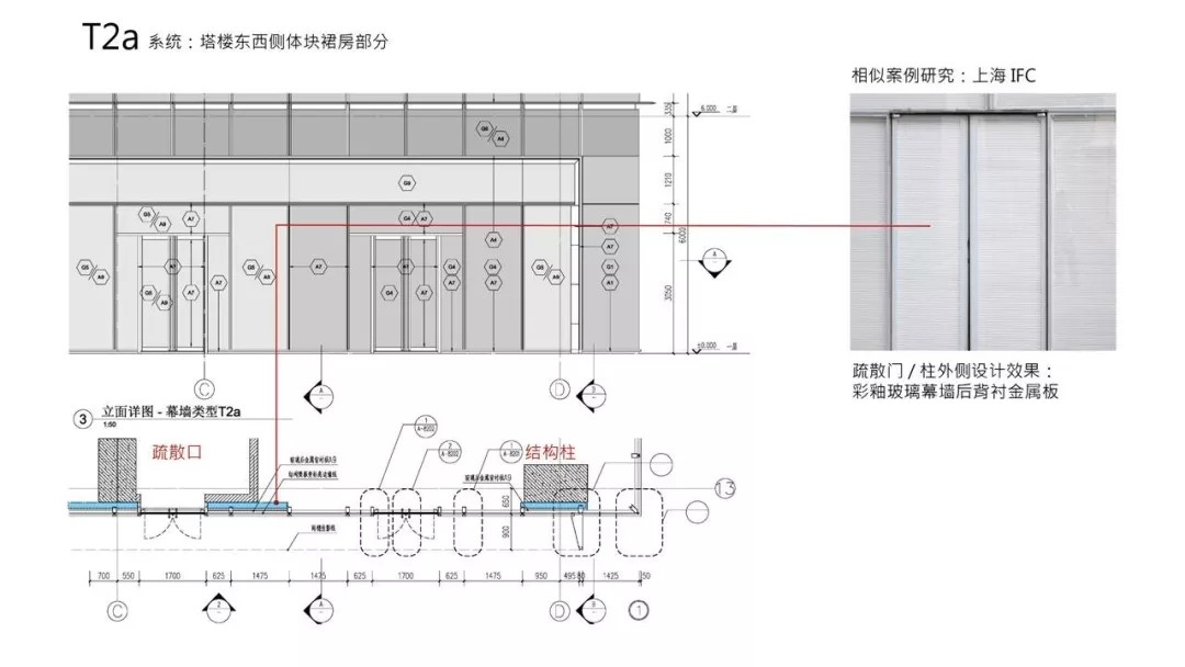 首先是外表皮分类,分类完成之后,幕墙有几种单元就非常清楚了,每种单元有不同的策略,从塔楼来说,主要的两个单元应该要覆盖80%以上的表面积以便于降低单元式幕墙的费用。