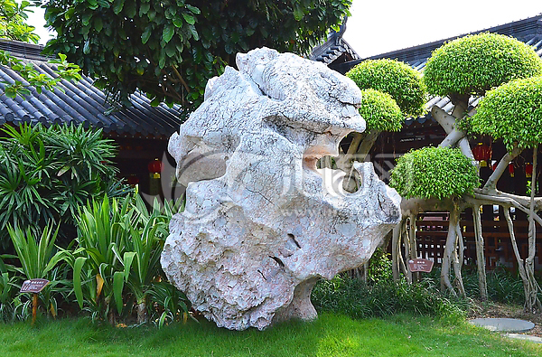 我国南方园林造景常用的景石为浅黄色的溪涧石,根据地域性差异有些景石偏灰褐色和黄白色。相石的一般原则是:大小搭配、外型完整、石面有一定纹理,石色、石质、石纹力求完